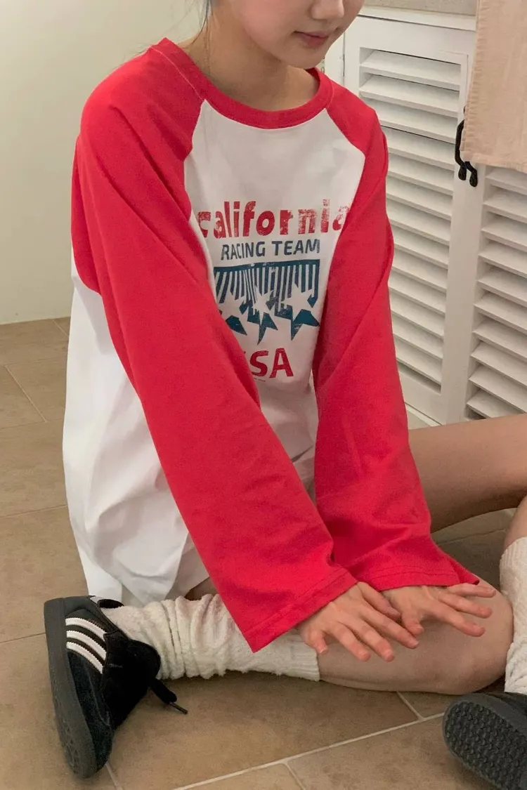 California Racing 拼色棒球T