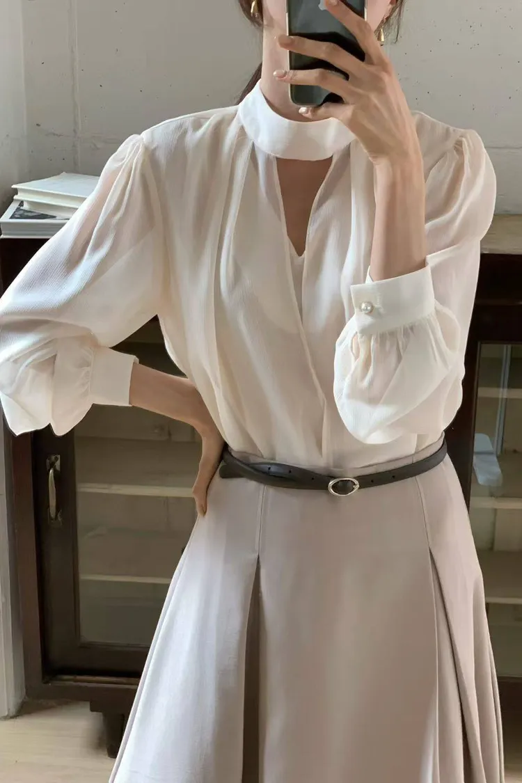 優雅綁帶雪紡襯衫