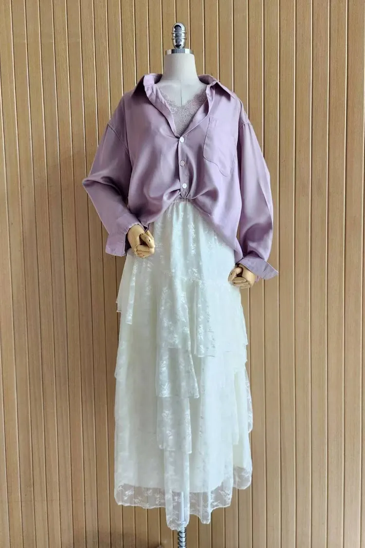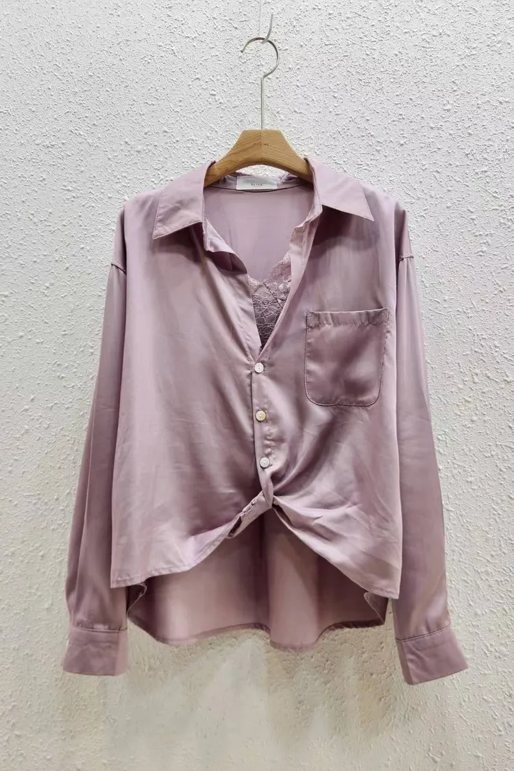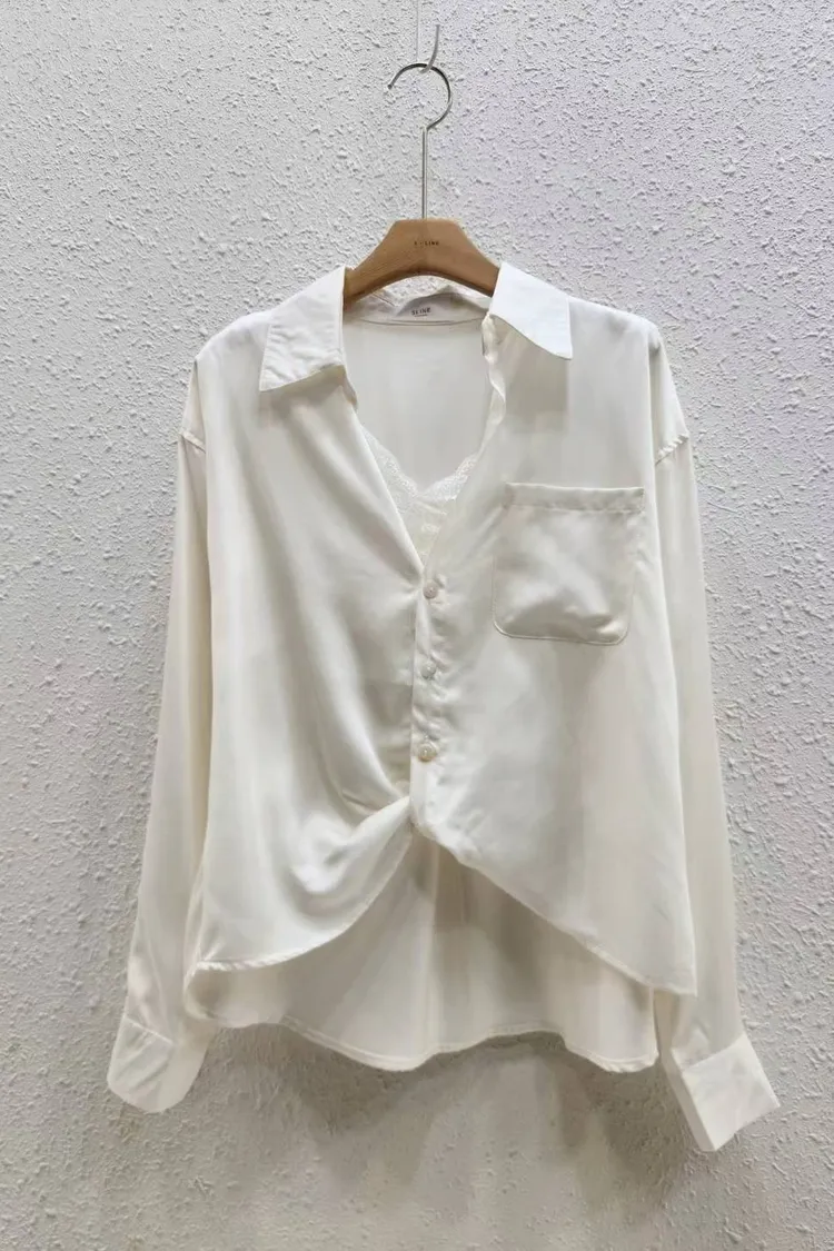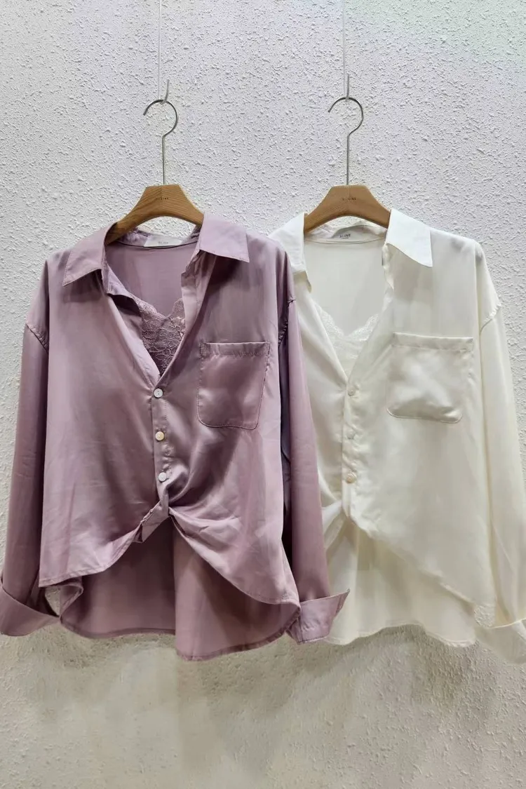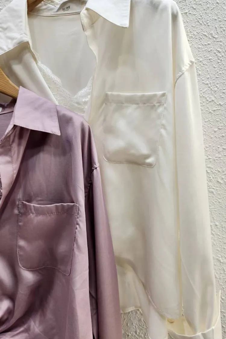 襯絲光感的交叉設計襯衫
