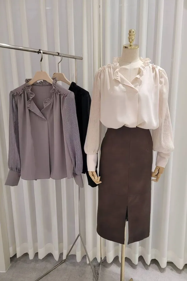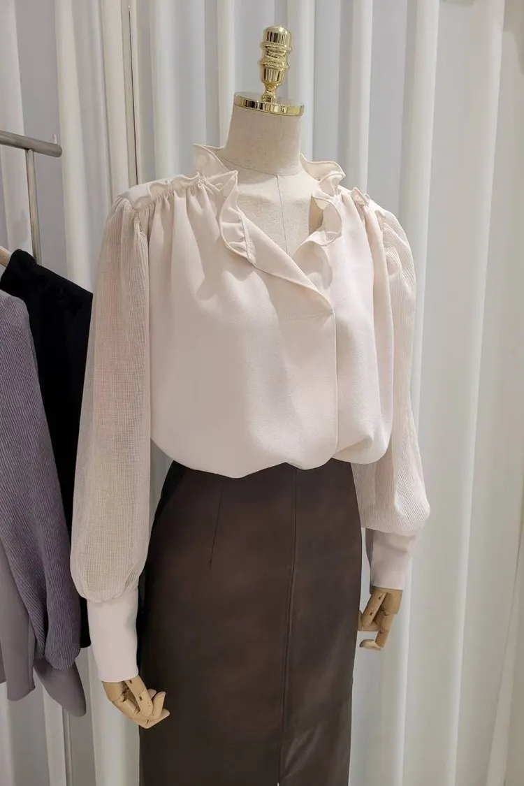 2111g-雲端荷葉.輕盈雪紡襯衫