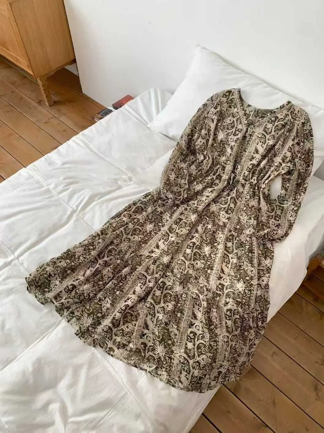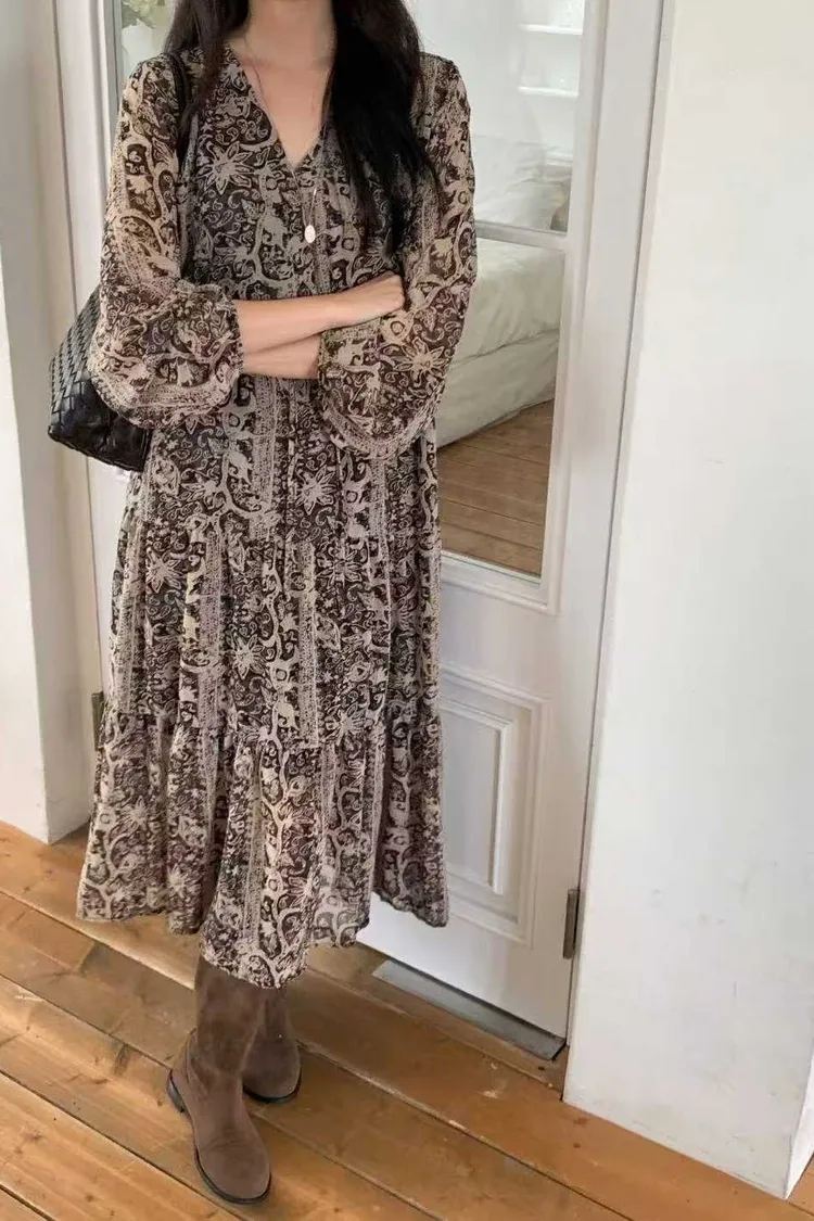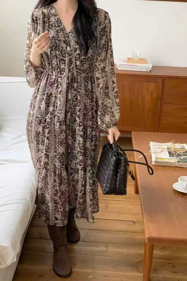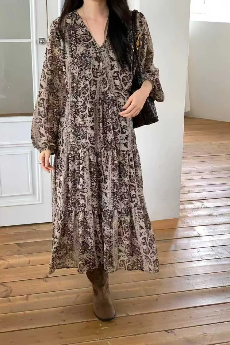 2211 V領雪紡印花洋裝