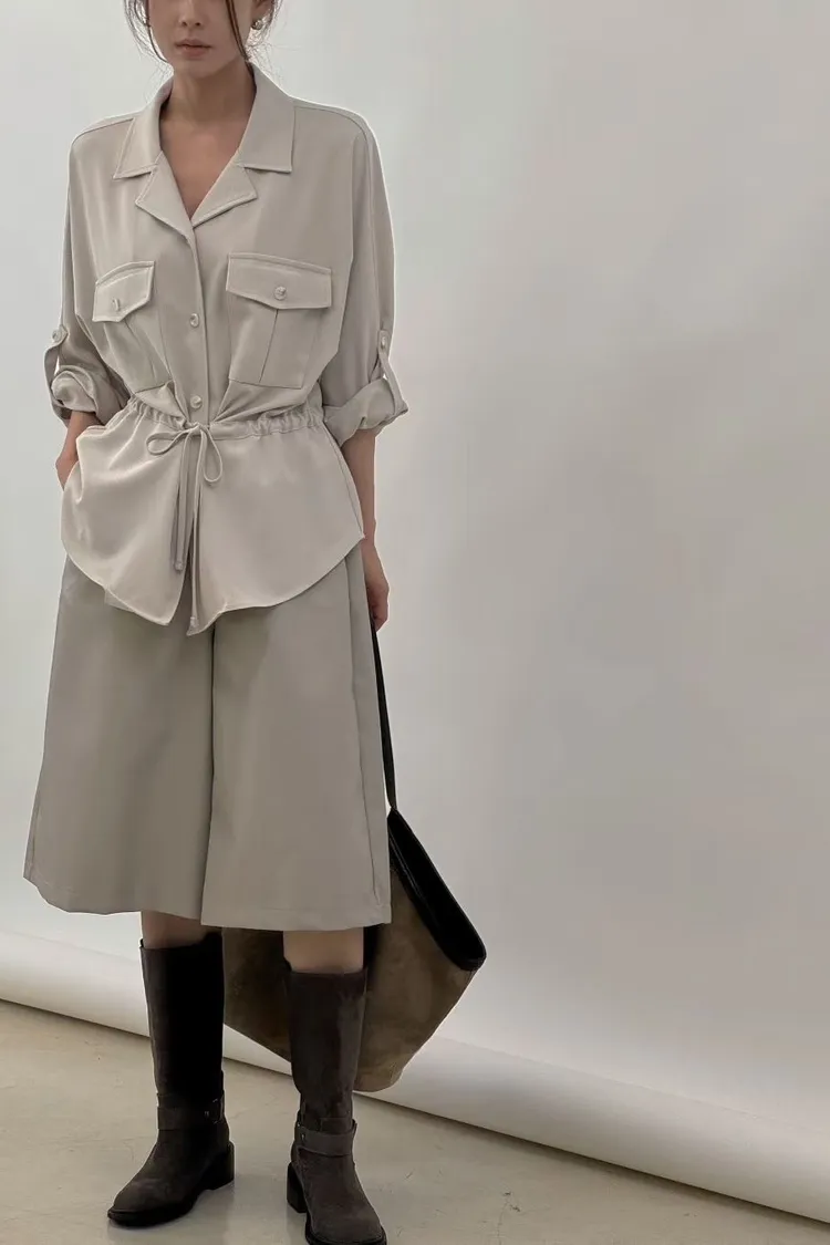 2309 帥氣雙口帶襯衫外套