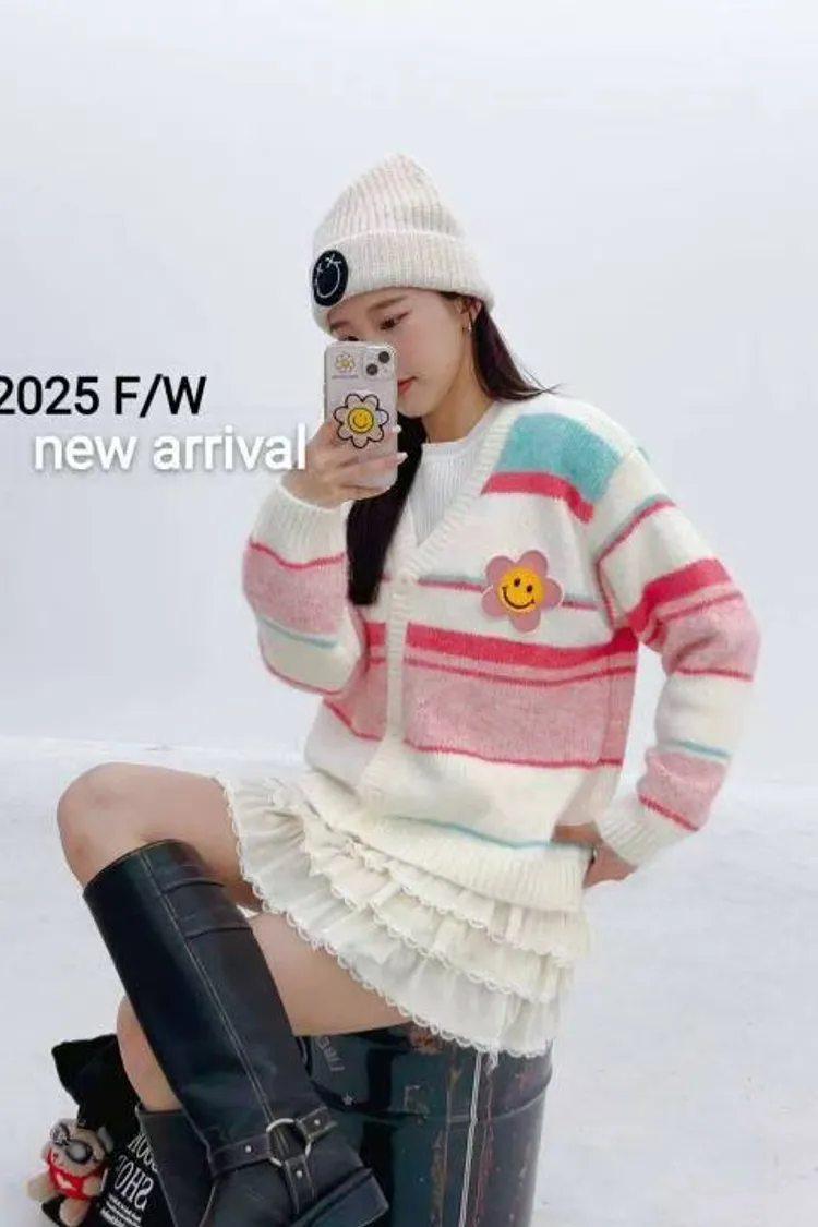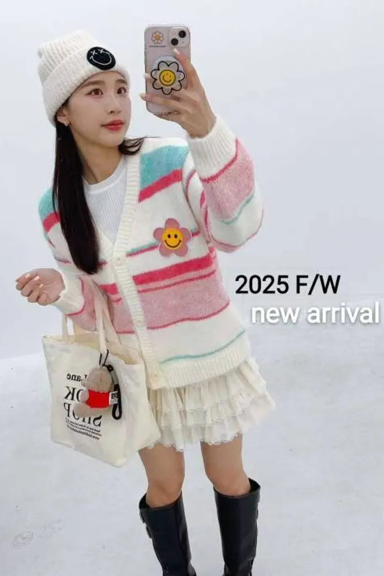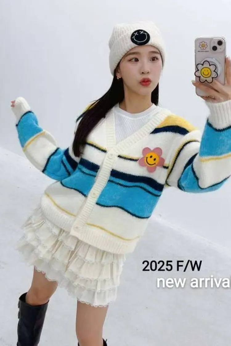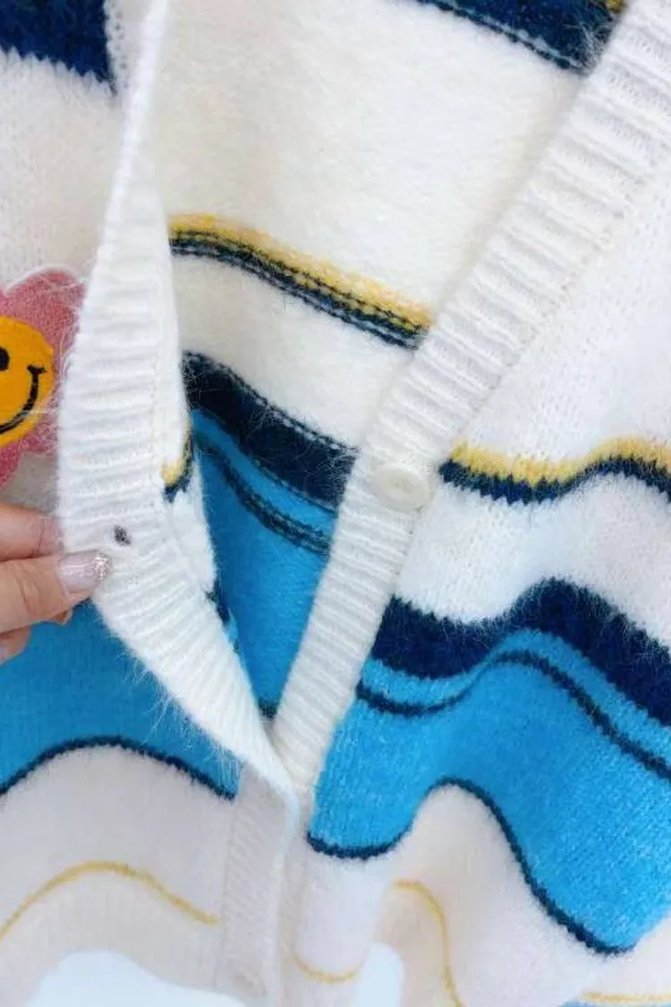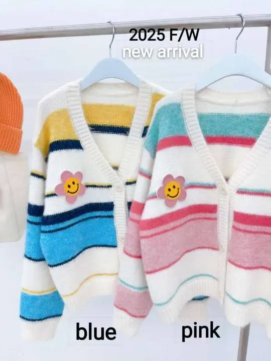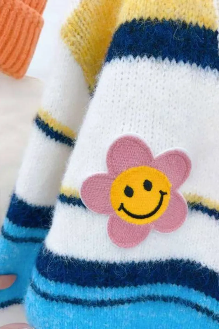 0709 彩色橫條紋笑臉外套